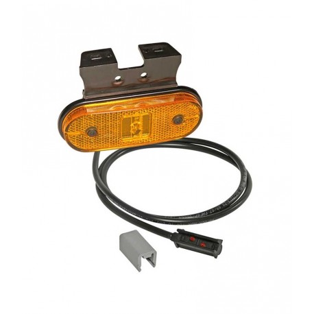 Luce laterale arancione a LED con cavo da 1,5m P&R, resinato direttamente nel fanalino e staffa di fissaggio a 90° rivolta posteriormente.